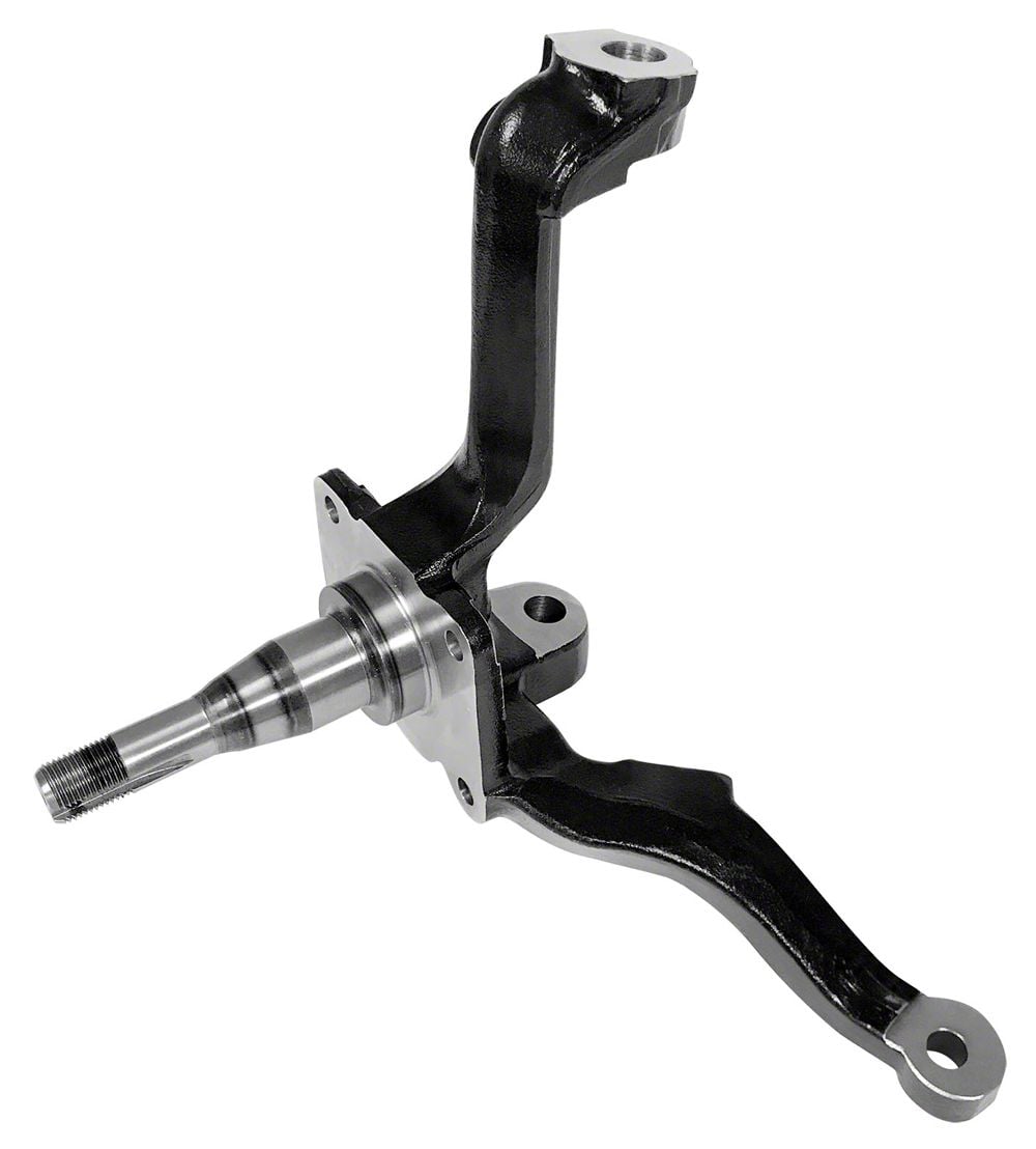 These spindles were obsoleted long ago by Ford and have become increasingly expensive and extremely difficult to find. Scott Drake's team started with a set of used, but excellent condition, Ford originals, to create 3D scans which were then used for CAD modeling and then double checked against original Ford blueprints. No corners were cut on this critical component; they were constructed from forged ASTM 5140 grade steel, a protective black e-coating was applied, and then all mounting surfaces were precision machined. They took special care to ensure bearing tolerances were identical to Ford's. For an extra measure of safety and durability, the entire spindle is heat treated and the bearing surface is treated with additional induction hardening.
