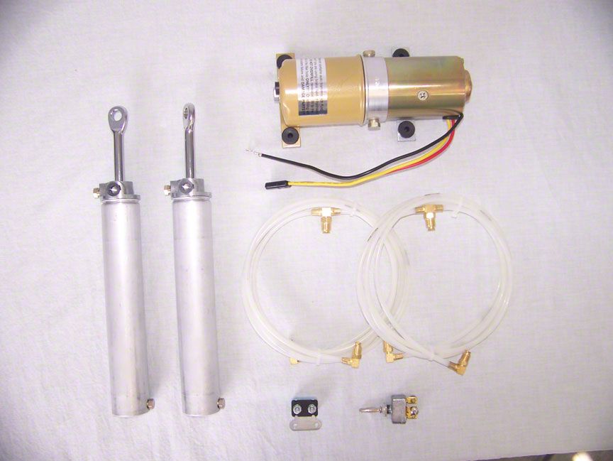 If your car did not come with the power top option, now you can add this option to your car. There is nothing like pressing a button on a nice sunny day and automatically dropping or raising your top. This kit will come with everything needed to do the conversion. (You will need a power top convertible top frame.) Includes 2 top cylinders, 1 motor pump, 1 hose set, 1 switch with wiring (universal style switch & wiring), 1 40 amp circuit breaker, 2 pairs of shoulder bolts for top cylinders, & 2 pins & keys for loop on cylinder rod. A shop manual or professional installation is recommended.