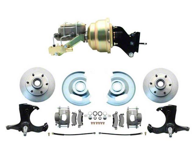 Complete power disc conversion kit from MBM Brakes. Designed for 1967-70 Chevy C-10s. Includes stock height spindle set with 6-lug rotors, bearings, seals, hardware, and loaded calipers! Also includes the 8" dual power brake booster, master cylinder and proportioning valve kit!