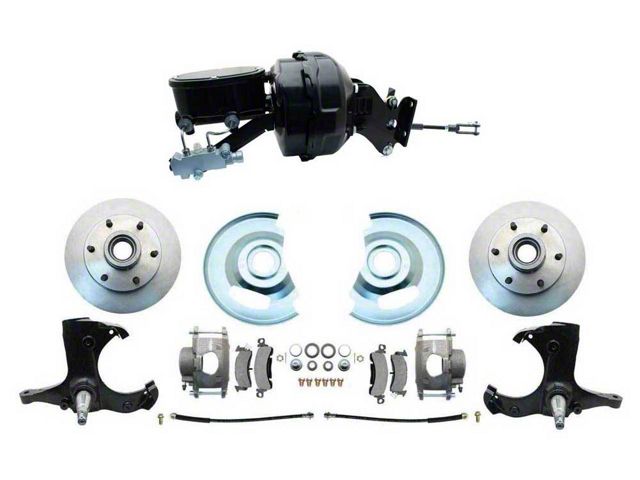 Complete power disc conversion kit from MBM Brakes. Designed for 1967-70 Chevy C-10s. Includes stock height spindle set with 6-lug rotors, bearings, seals, hardware, and loaded calipers! Also includes the 8" dual power brake booster, master cylinder and proportioning valve kit!