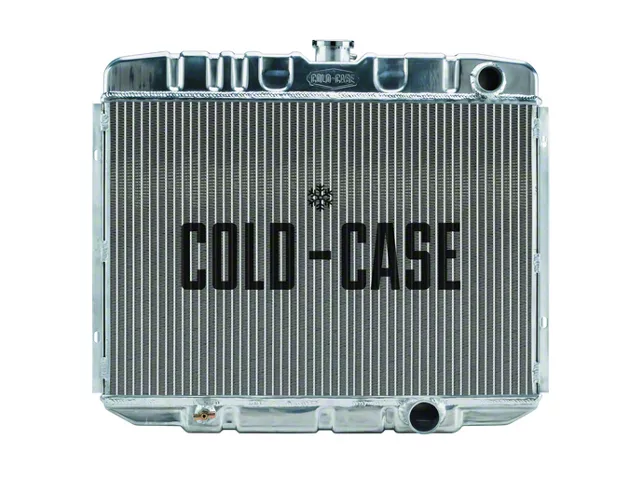 MAC’s Mustang is proud to offer this quality all aluminum radiator by COLD-CASE at an affordable price compared to other high price aluminum radiators on the market. COLD-CASE radiators are Tig welded 100% aluminum and absolutely beautiful. Don't buy a 3 or 4 row aluminum radiator! It doesn't cool as good as these oversize 2 row models. These radiators are original appearing and have the correct stamping. Once painted, you'd be hard pressed to find a difference over an original versus a COLD-CASE.