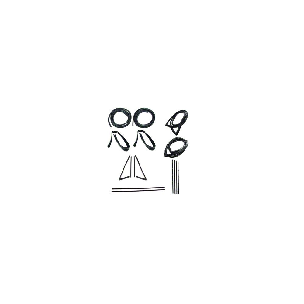 - Complete weatherstrip seal kit - models with weatherstrip trim groove, large rear window & chrome beltline moldings. kit includes: door weatherstrip with mitered corner, upper channel, division post glass run, vent seal kit, large rear window seal, chrome style windshield seal, beltline kit.