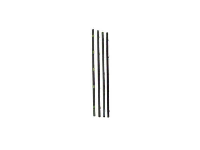 These beltlines mount with the pre-applied clips on the top inner and outer part of the door to squeegee the door glass. This is a 4 piece chrome bead kit for both driver and passenger doors.