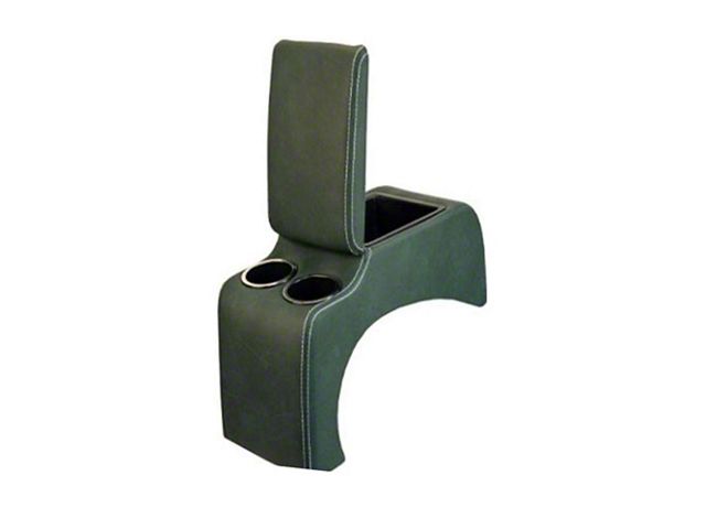 TMI custom consoles give your truck a headturning look. The molded fiberglass body is covered with forest green vinyl and features contrasting white stitches and cupholders. Made for use with TMI's Sport X split back custom bench seat PN 61-860430