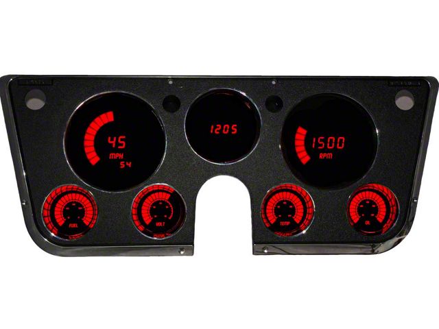 The Intellitronix Bargraph gauge conversion comes complete with direct fit printed circuit boards, custom fit "smoked" Plexiglas faceplate, universal temperature sending unit, oil pressure sending unit, and speedometer sending unit (sender/sensor) for vehicles without electronic transmission or cruise control, and instructions for installation. Featuring a custom-designed LED bar graph, the unit is microprocessor controlled with peak rpm memory recall, and automatic night dimming, Shift light, and RPM activated Switch (Can handle 3 amps) . It also includes in-dash mounting hardware and installation instructions. It is only 3 3/8" diameter & 1 1/2 inches deep. It works on 4,6 and 8 cylinder engines. A