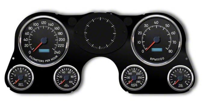 1967-1972 Chevrolet Truck New Vintage USA 6 Gauge Aviator Series Package - 240 KPH Programmable Speedometer with Tachometer, Oil Pressure, Water Temp, Fuel and Volt Meter - Black
