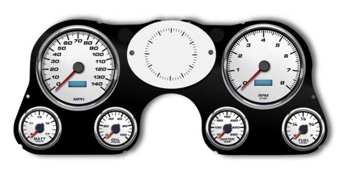 1967-1972 Chevrolet Truck New Vintage USA 6 Gauge Performance II Series Package - 140 MPH Programmable Speedometer with Tachometer, Oil Pressure, Water Temp, Fuel and Volt Meter - White