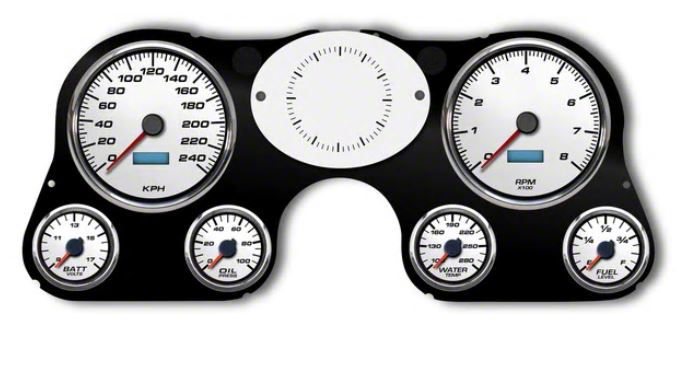 1967-1972 Chevrolet Truck New Vintage USA 6 Gauge Performance II Series Package - 240 KPH Programmable Speedometer with Tachometer, Oil Pressure, Water Temp, Fuel and Volt Meter - White