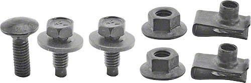 4 serrated washer-head hex bolts, 2 J-nuts (threaded clips) and 2 serrated flanged nuts.
