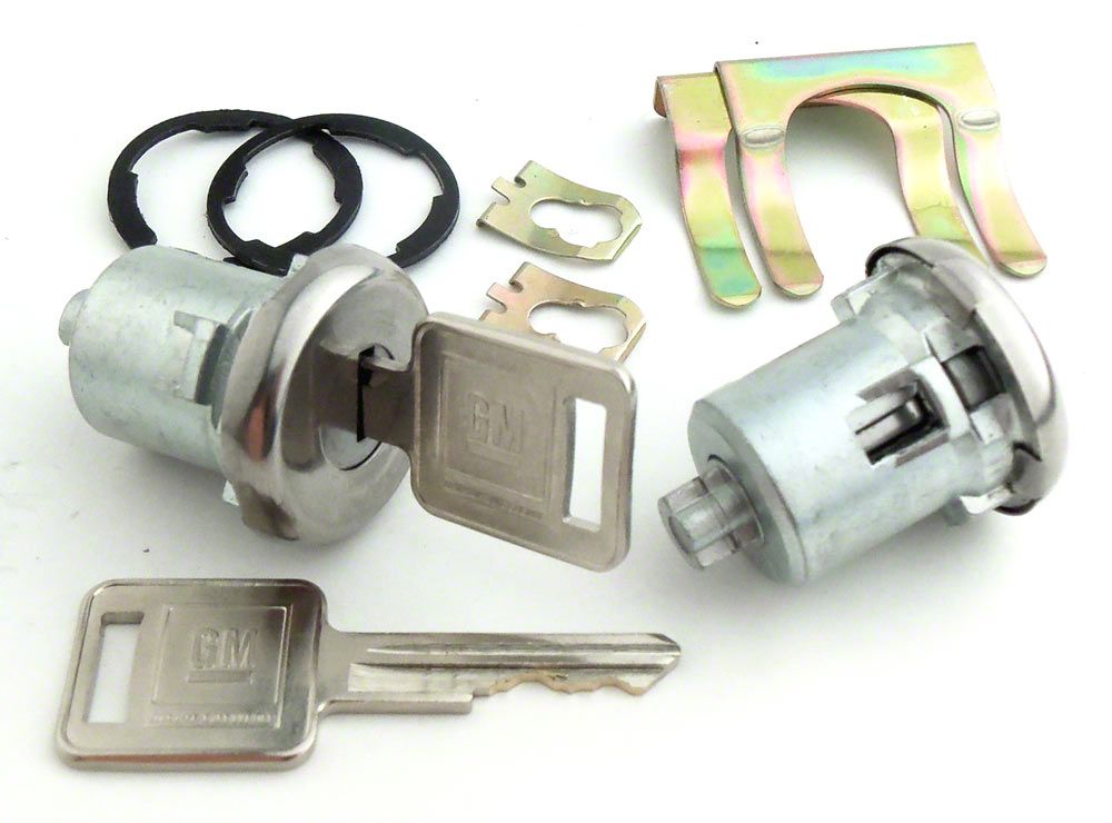 This door lock cylinder set includes clips, gaskets, hardware and keys.