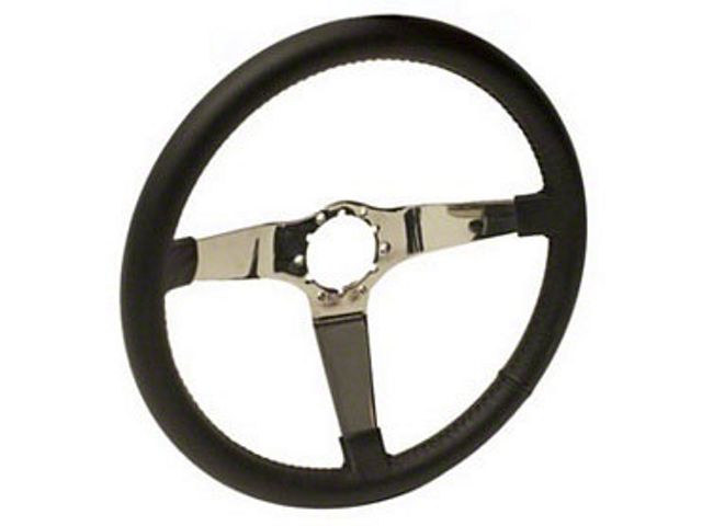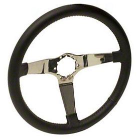 Blend Vintage Style With Modern Comfort. This Black Leather and Chrome 3-Spoke Steering Wheel is a faithful reproduction of the original design, offering Corvette owners a stylish way to refresh their vehicle’s interior. The chrome spokes add a bright, classic accent, while the leather wrapping enhances grip and comfort for everyday driving.