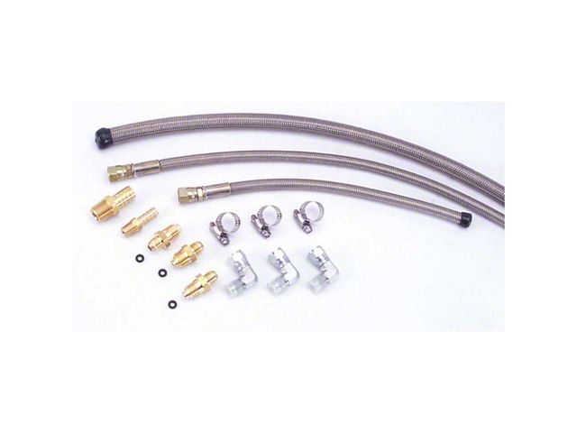 Make your rack and pinion conversion easier with Flaming River's steering hose kit. Includes stainless braided lines with fittings for installing Flaming River power rack and pinion with a remote reservoir. Simplifies installation with a clean, polished appearance.