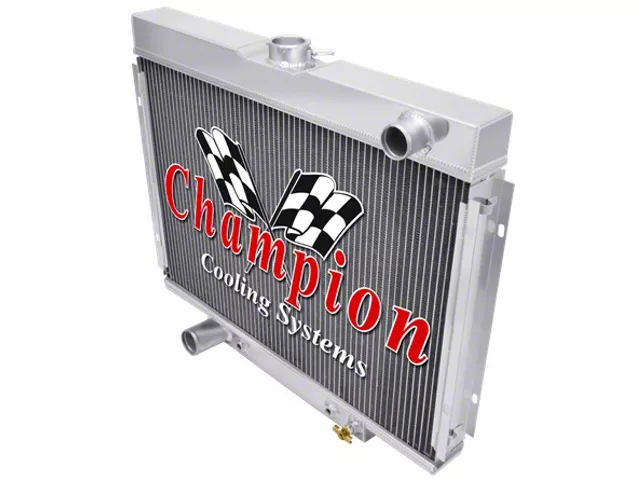 Your classic Ford or Mercury can get hot... really hot! Driving and idling in traffic on 90+ degree summer days can push your stock cooling system to its limits... and beyond. Factory brass radiators are barely satisfactory at transferring heat, which is why they overheat when you least expect it. Why take chances with your valuable engine? Step up to Champion's all-aluminum, high efficiency radiator. Aluminum alloy is a far superior metal to the original equipment copper-brass construction because it dissipates heat much more quickly and cools down much more rapidly. Heat transfer from your engine to the atmosphere is greatly increased, thereby lowering the temperature of the engine coolant dramatically. An aluminum radiator will out-cool a copper/brass radiator of s