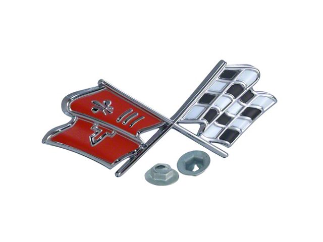 Application. This Crossed-Flags Emblem fits 1967 Chevrolet Corvette C2 models. It restores iconic style and detail to the front end of your classic Corvette, delivering a factory-fresh look that honors the heritage and performance image of the C2 generation.