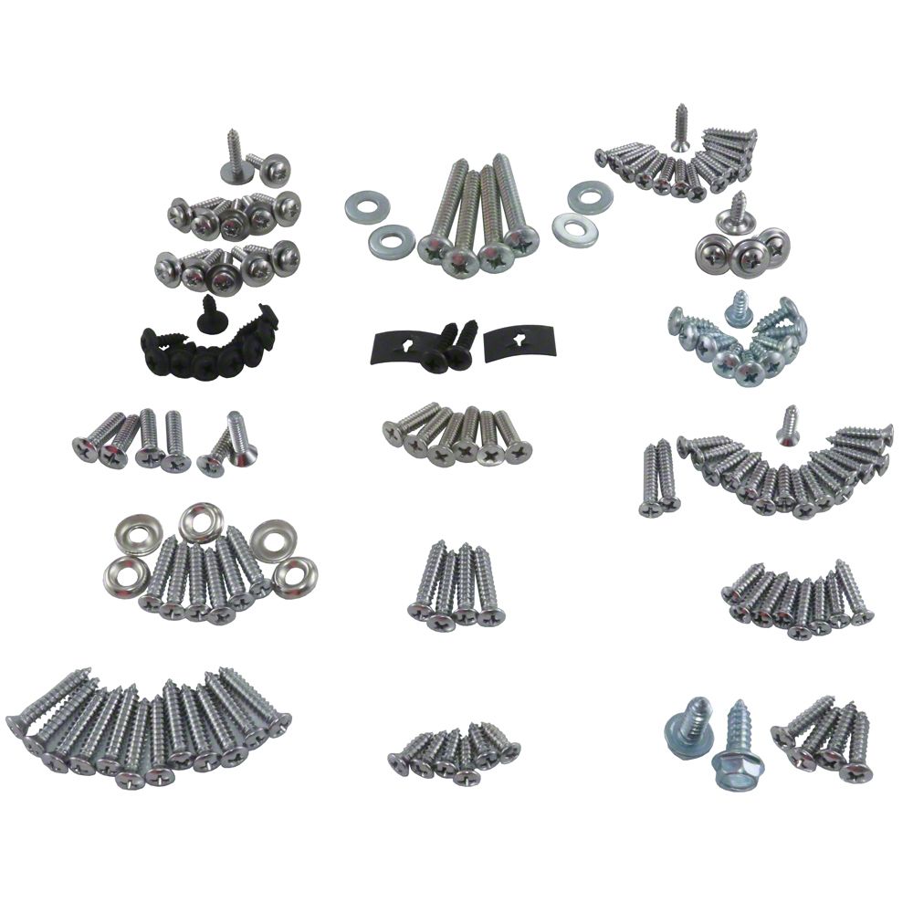 Construction and Appearance. Manufactured to OEM specifications, each screw in this set is crafted for durability and precision fitment. The set replicates original hardware dimensions and finishes, making it ideal for accurate restorations where detail and authenticity matter.