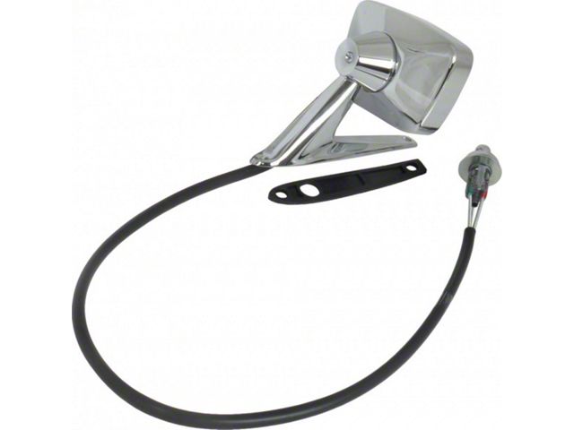 We've learned that some remote mirrors on the market won't work in '67 Fairlanes. The mirror and toggle are right, but the cable, or pigtail, is too short to properly get around the vent window components. This version is just as nice as those, and has a cable that is even slightly longer than original. This makes it very easy to work with. It includes mounting hardware, and a base-gasket so you won't have to live with any substandard parts. Base length is 6- 5/8", hole to hole dimension are 5- 7/8". Please see our related listings for a matching passenger side mirror to complete the job.