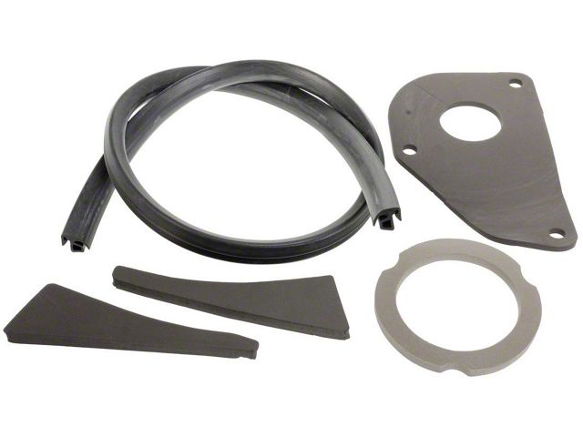 This set includes the steering column to firewall seal, two under cowl vent wedge seals, a wiper motor seal, a hood to cowl seal, and instructions. It's simply the best way to properly keep the elements outside the car where they belong.