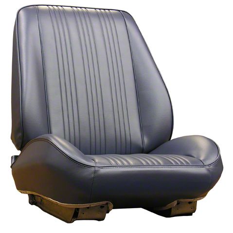 Rallye-style bucket seat upholstery with foam. Each set features as-original madrid grain accent bands and skirts with die-electrically heat-sealed, madrid grain skirts.