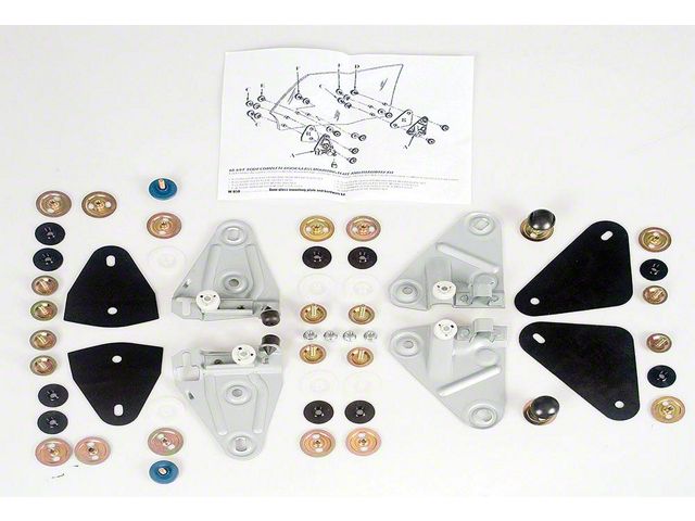 Whether your door glass is cracked, stained, or smudged, you'll need to eventually replace it to stay safe in your 1968-1969 Camaro. When replacing your window glass, it is best to get new mounting tools to ensure you have a safe and successful assembly. Rick's Camaros offers this new and complete door glass mounting plate and hwardware kit, which includes everything you need to mount the driver's side and passenger's side door glass. This 68 piece set includes the front and rear mount plate set for both the right and left side glass, two door glass plate gasket sets, six front and rear glass plate mount stud assemblies, two rear glass plate mounts and nuts, two forward door glass stop bumper assemblies, four