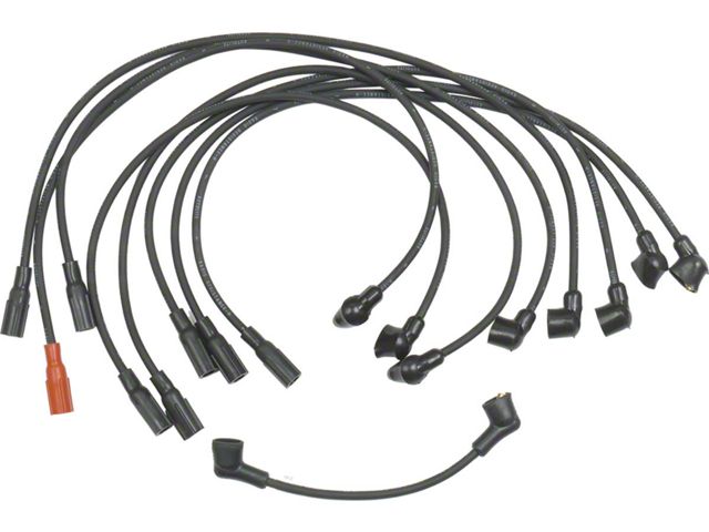 Spark plug wire sets are tailored to each engine and year. They feature the original ink-stamped part numbers with correct logos on the boots, and correct sleeving is used where applicable.