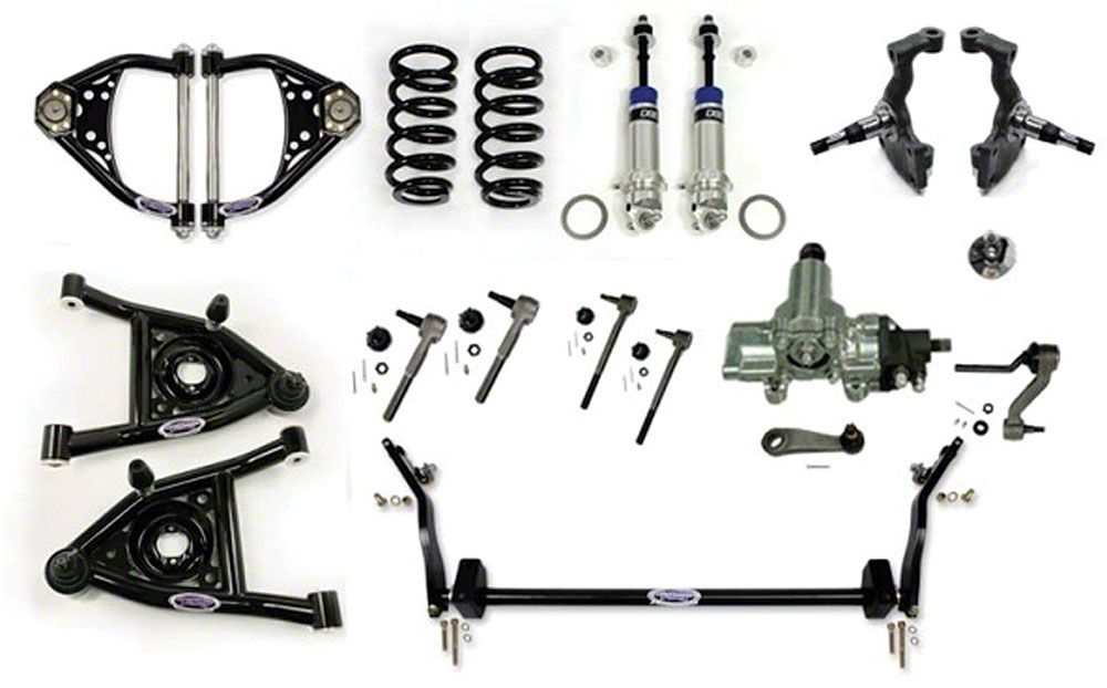 Detroit Speed "A" Body Speed Kits are designed to work as an integrated system on your vehicle. By utilizing our proven DSE components and carefully selecting components designed to complement each other, each speed kit is for your driving needs with the ease of a bolt-on package. Speed Kit 3 is designed to bring your classic "A" Body into the 21st century with improvements in ride, handling, and camber/caster correction, coilover shocks and springs that provide ride height adjustment.