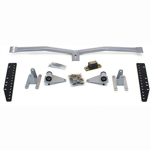 Frame mounts and transmission crossmember bolt-in to factory mounting holes, requiring no drilling or modifications