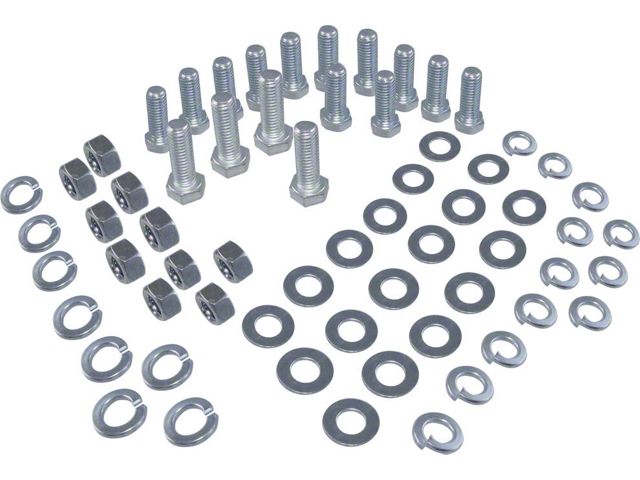 Complete Rear Bumper Bolt Set. The Bumper Bolt Set is designed for the rear model of 1968-1973 Corvette C3 models, providing a comprehensive solution for securing your vehicle's rear bumper. Featuring a combination of raw metal and polished chrome finish, this set includes bolts, nuts, and washers, ensuring a complete installation. As an OE compatible and comparable part, it meets original equipment standards for quality and fit.