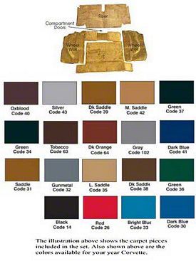 OEM-Quality Rear Carpet Set. The 80/20 Loop Rear Carpet Set is a high-quality replacement designed to replicate the original factory specifications of your Corvette's carpeting. It features a correctly molded heel and pad, dimmer switch cutout, and vinyl edge bindings for a seamless integration with existing factory parts. This carpet set is essential for restoring or maintaining the interior of your vehicle with an authentic look and feel.