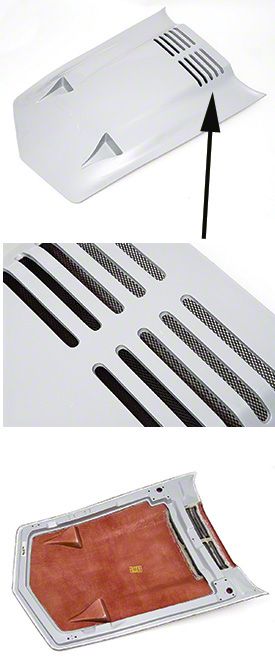 Construction and Appearance. This hood is crafted from hand-rolled, automotive-grade fiberglass with three layers of 3.5-ounce mat and a 21-mil soft-sanding gel coat, ensuring a smooth, bubble-free finish. Reinforced with machined steel plates, it features functional rear air extractors and integrated front NACA ducts that can be opened for improved airflow.