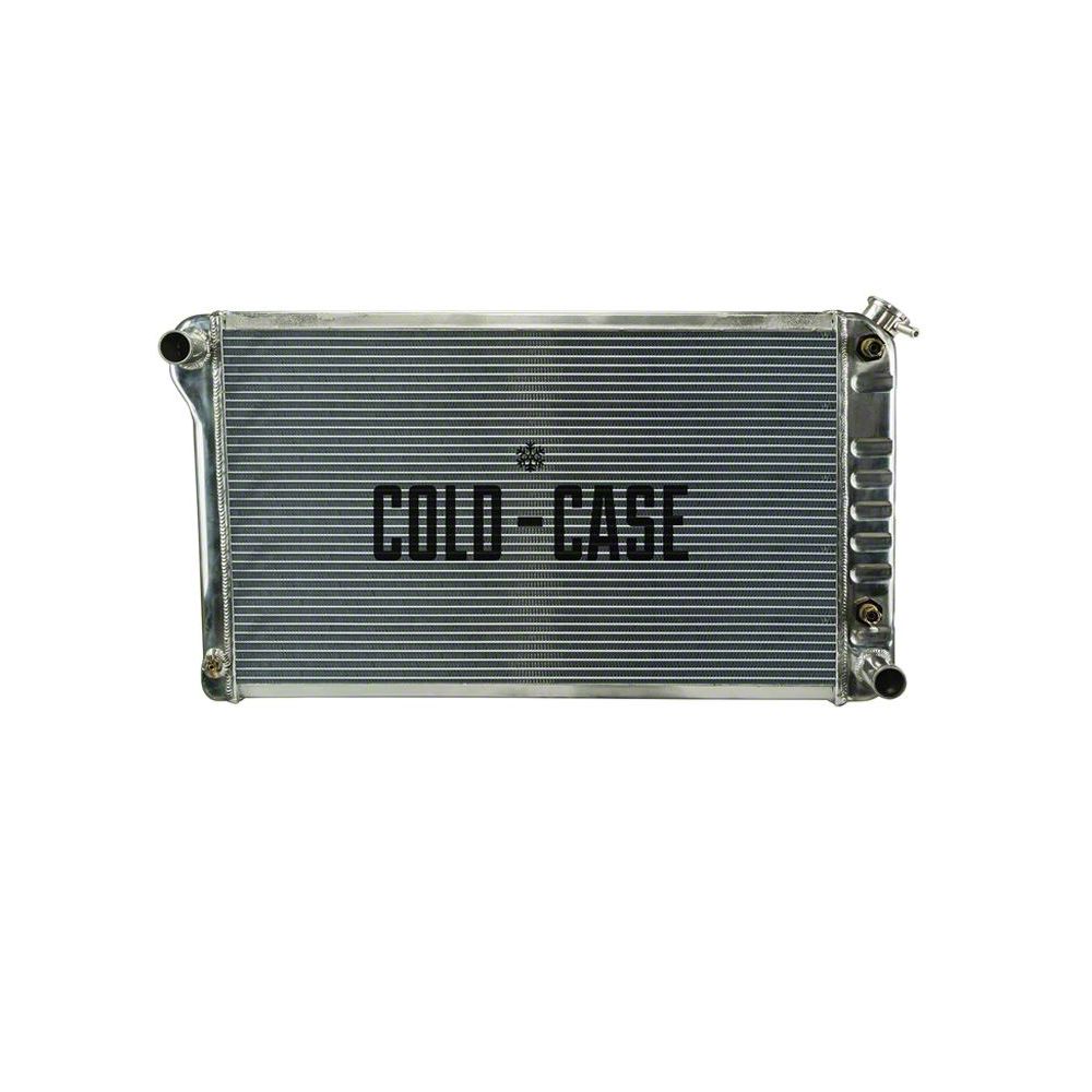 The El Camino Store is proud to offer this quality all aluminum radiator by COLD-CASE at an affordable price compared to other high price aluminum radiators on the market. This radiator is an exact fit (not a universal replacement) and replaces your original copper / brass radiator and will cool like a modern car! COLD-CASE radiators are Tig welded 100% aluminum and absolutely beautiful! Don't buy a 3 or 4 row aluminum radiator! It doesn't cool as good as this oversize 2 row model.