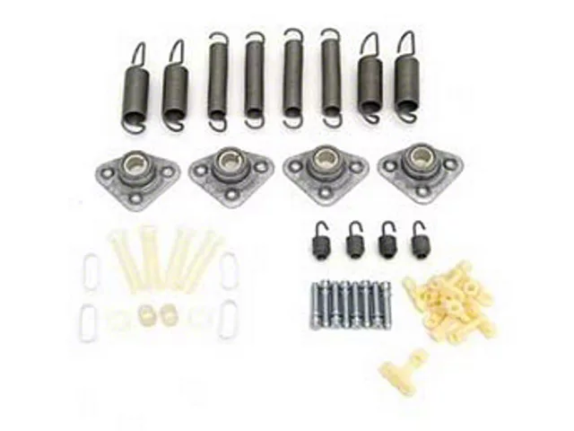Construction and Appearance. Crafted from premium-grade stainless steel, this kit includes all the necessary components such as springs, bearings, screws, and adjusters. The materials used in construction ensure long-lasting durability and reliability, seamlessly integrating with factory parts for a restored look.