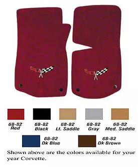 Application. This Corvette Lloyd Mats Floor Mats With Embroidered Crossed-Flags Logos fits all 1968-1982 Chevrolet Corvette models.