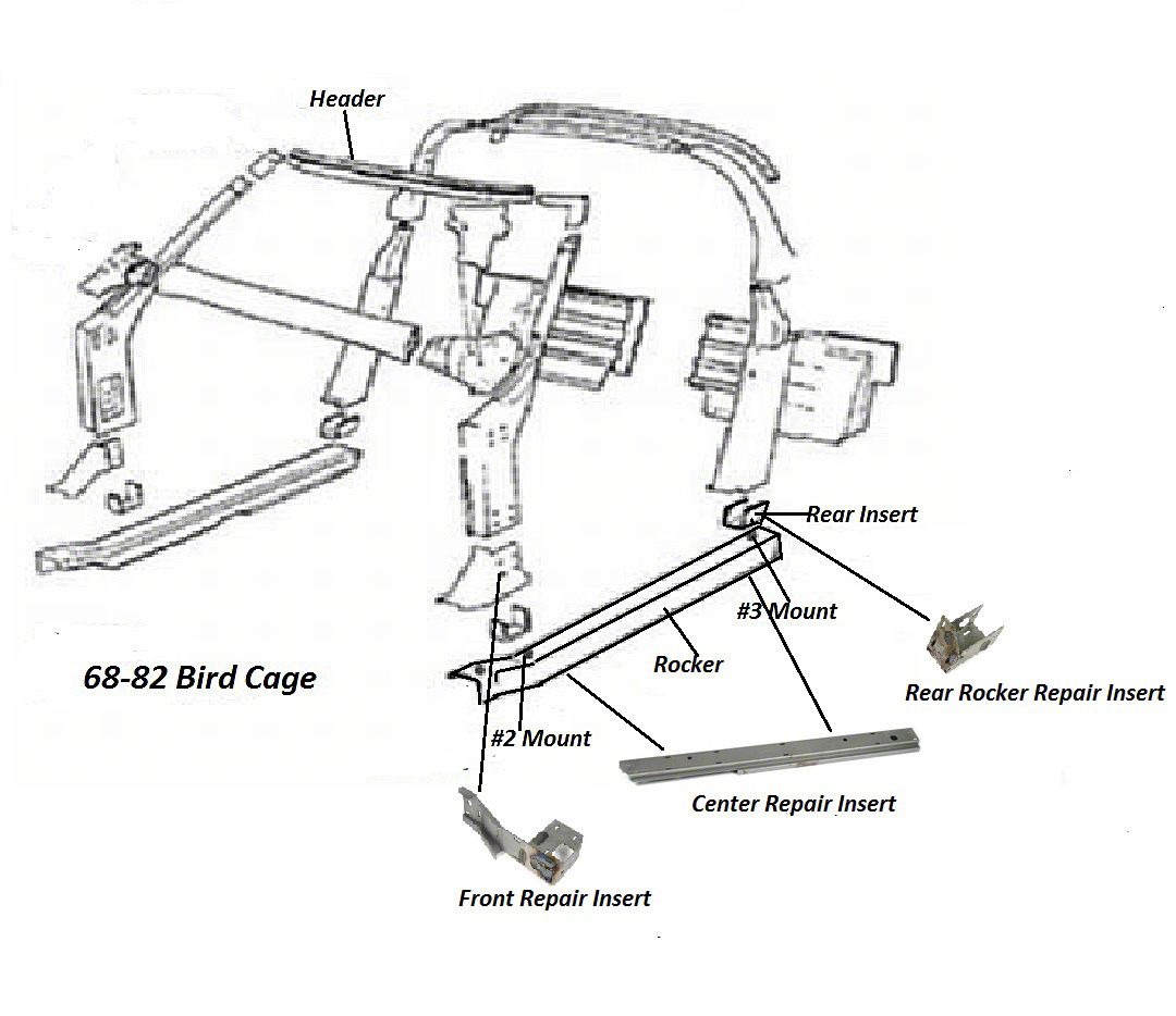 This is the perferct part to repair the the lower rusted are of your rocker panel area. Requires lifting of the body to install from the the bottom of the birdcage.