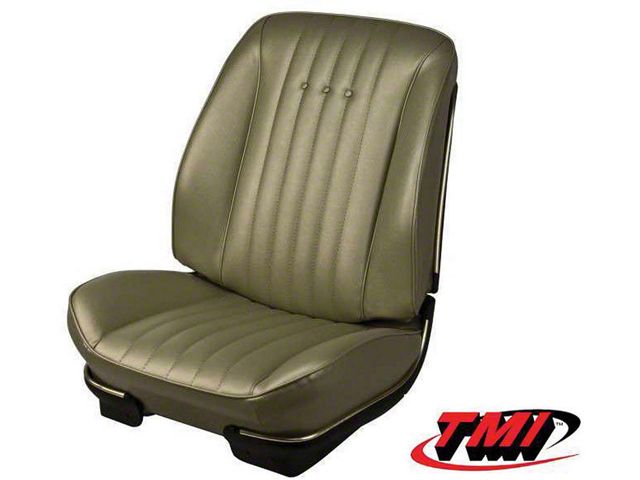 Now available in a set!! Chevelle TMI Sport Seats that transforms your factory seats into G-Force absorbing sport seats while maintaining the factory look. These Vinyl front seat covers come in all the factory colors for a perfect match, and have more bolster in them than factory style seats.These are a better feel and support for your Chevelle's factory Seats. Utilizes the factory seat frames for easy installation. Retains the original factory look and adds MUCH needed comfort and support! Note: TMI seat foam required, not included (see P/N 50-291422)