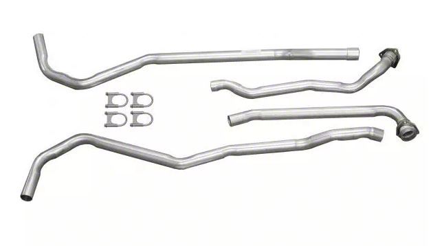 Replace your rusted-out exhaust system with our aluminized exhaust pipes. Bent to factory specifications, our aluminized pipes will last 3 times longer than the stock system. Aluminized components are made of carbon steel and coated inside and out for long life. All components are supplied with installation hardware including all necessary pipes, clamps, flanges, donut gaskets and inserts. Hangers not included.