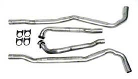 Replace your rusted-out exhaust system with our aluminized exhaust pipes. Bent to factory specifications, our aluminized pipes will last 3 times longer than the stock system. Aluminized components are made of carbon steel and coated inside and out for long life. All components are supplied with installation hardware including all necessary pipes, clamps, flanges, donut gaskets and inserts. Hangers not included.