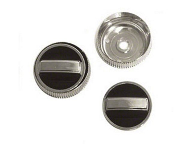 Construction and Appearance. Each knob features a durable matte black body complemented by a polished chrome finish accent, replicating the original design for period-correct style. The components are built to OE standards, providing both aesthetic appeal and long-lasting performance under regular use.