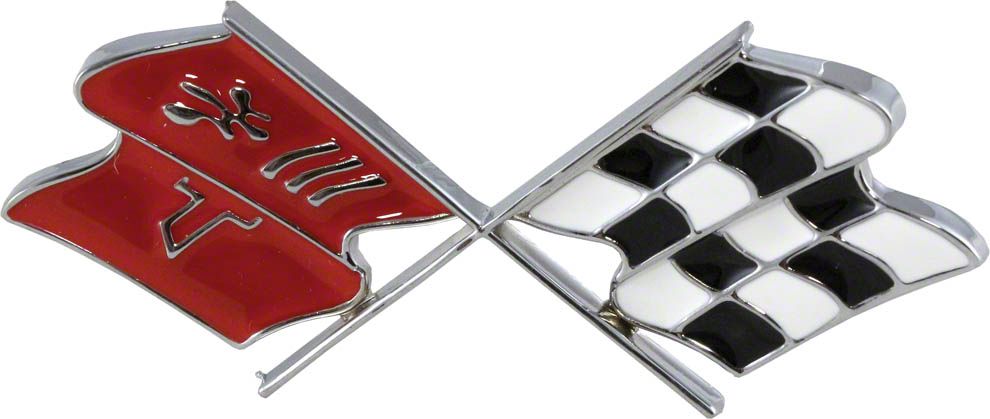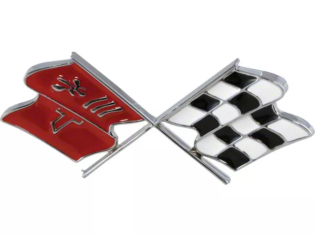 Corvette Crossed-Flags Emblem. This Gas Door Crossed-Flags Emblem is the perfect way to enhance the sporty and stylish look of your Corvette. It follows original factory specifications, ensuring that it blends seamlessly with your vehicle while serving as a reliable OEM-quality replacement. This emblem is designed to perfectly fit your Chevrolet Corvette, making it an essential upgrade for enthusiasts and restorers.