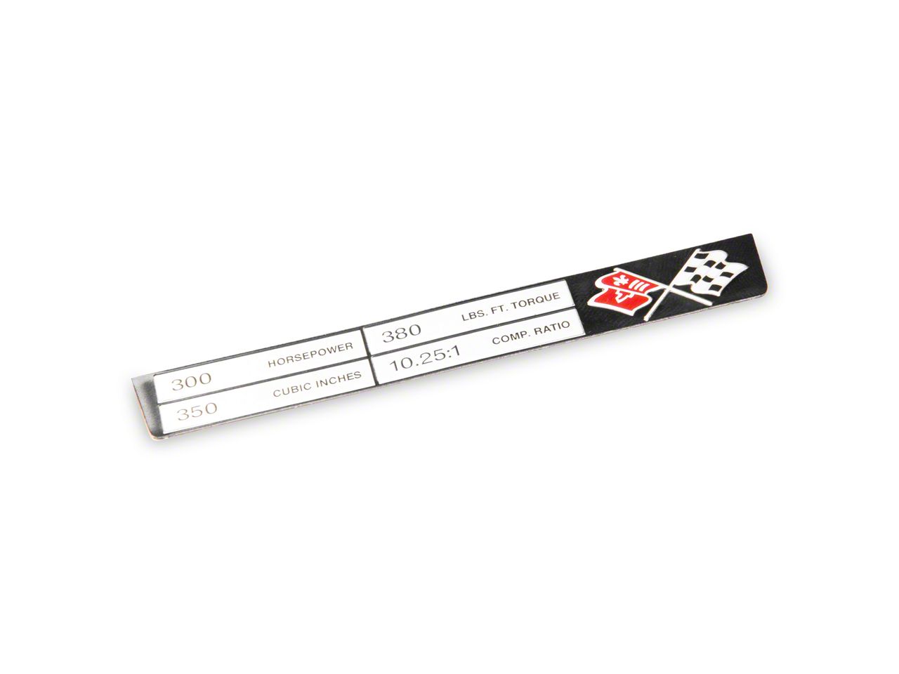 Application. This Console Specifications Plate 350ci/300hp fits 1969–1970 Chevrolet Corvette models equipped with the 350ci/300hp engine.