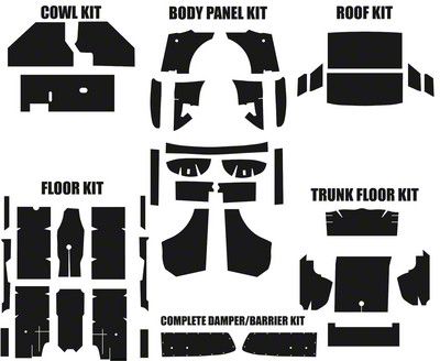 Acoustishield introduces a multi-stage, automotive insulation & sound damping system designed to give you the quiet riding comfort found in today's new Mustangs. These kits are designed with current state-of-the-art auto acoustic technology, made specifically to insulate & control the noise, vibration & heat in your classic Mustang. Kits are pre-cut and easily installed in a couple of hours with easy-to-follow, illustrated instructions. Everything you need to do the job right. Each kit includes insulation for: interior floor, trunk floor, body panels, cowl, roof (except convertible) plus door dampers.