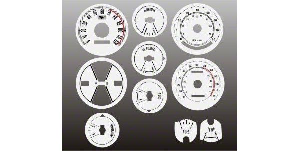 The white gauges overlays are made of a vinyl plastic with adhesive backing. They install over your stock faces and require no needle removal or recalibration. Includes printed Install Instructions.