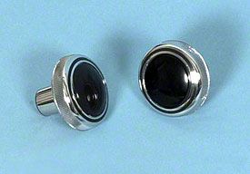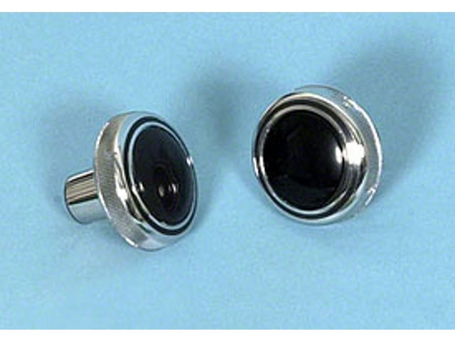 Construction and Appearance. Featuring a polished chrome and glossy black finish, these knobs are crafted to meet OE standards, delivering durability and a factory-correct look. Their high-quality construction ensures a comfortable grip and reliable performance for both volume and tuning adjustments.
