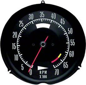 Accurate Reproduction Tachometer. This Tachometer is designed for 1969-1971 Corvette C3 models, offering a precise and reliable gauge for your vehicle's engine performance. Featuring a matte black face with clean white lettering and a racing red needle, this tachometer is a reproduction part that matches the original design while providing modern accuracy. With a 6500 red line, it is specifically compatible with high-performance engine models such as the 1969 427ci/435hp and 427ci/430hp, 1970 350ci/430hp, and 1971 350ci/370hp and 350ci/330hp models.