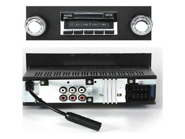Custom Autosound's USA-230 is an excellent choice for classic car enthusiasts looking for a more affordable radio without sacrificing quality electronics and a classic stereo look. It has been designed to fit in the stock dash without any modifications required. The USA-230 has the same appearance and all of the feat