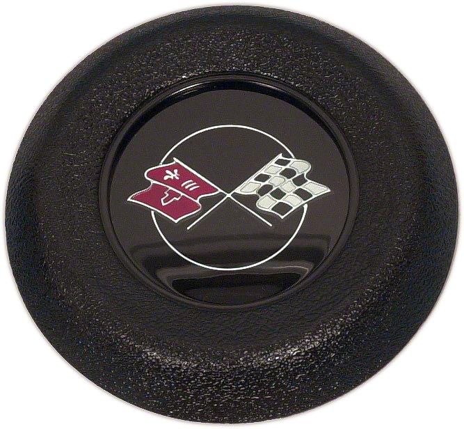 Reliable Reproduction for Restoration. This Horn Button with Tilt/Telescopic Column is a high-quality reproduction designed to replicate the original part for 1969-1975 Chevrolet Corvette models. Featuring the classic Chevrolet’s Crossed Flags logo, it's ideal for repair and restoration projects requiring factory-accurate detailing.