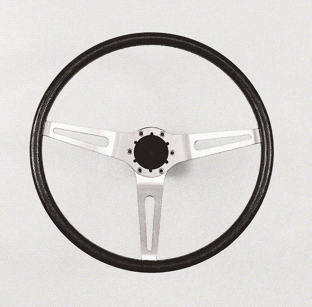 OEM-Style Steering Wheel. This Steering Wheel Assembly is designed to replace old or faulty factory steering wheels, providing a restored vintage look with an OEM-style black rim. Measuring 15 inches in diameter and compatible with both standard and tilt/telescopic columns, this steering wheel is designed to seamlessly integrate with factory parts for a cohesive look and feel.