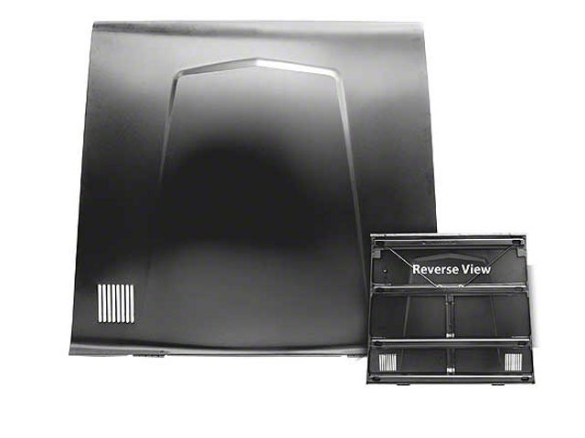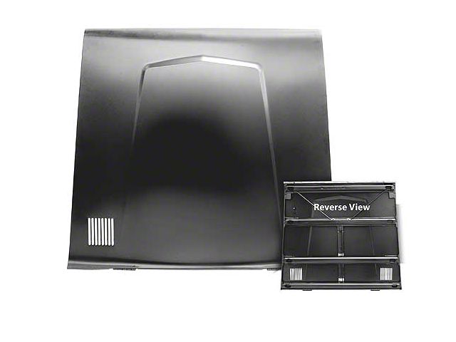 This is the same size and shape as the 'early' hood, but it does not have the holes for the windshield hooks.