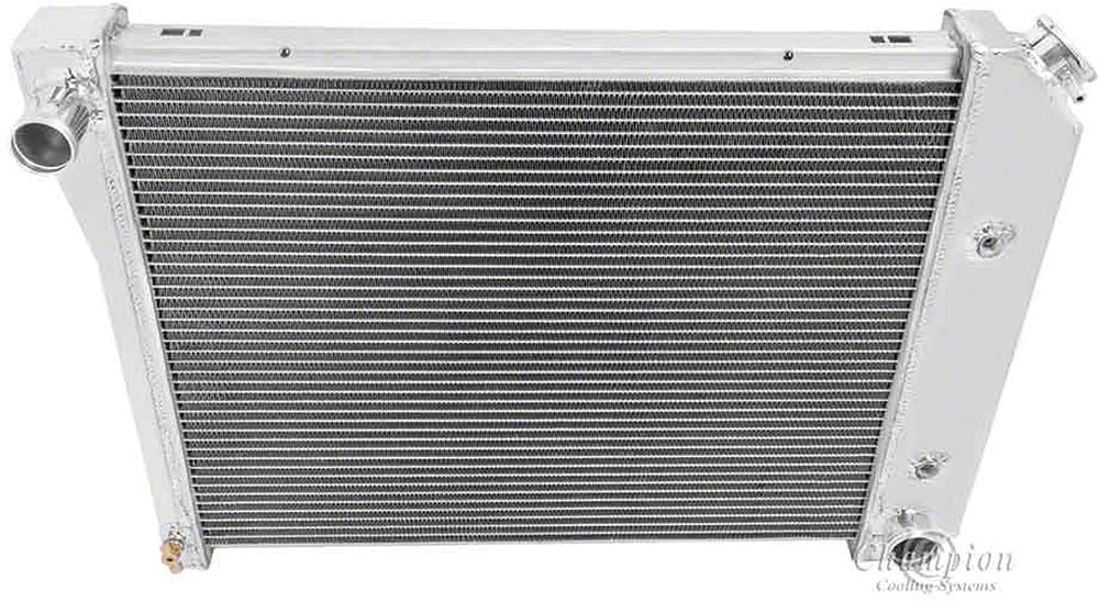 Your 1969-1979 Nova or Chevy II can get hot...really hot. Bumper to bumper traffic, blistering summer days, and daily driving can add up. The factory copper and brass radiators were barely satisfactory at transferring heat which is why Chevy engines will overheat. Why take chances with your valuable Chevy engine? Champion Aluminum Radiators from Eckler's Nova provide outstanding performance at an excetional value. Aluminum is a far superior to the original copper and brass because it dissipates heat and cools down much more quickly. That means better protection for your investment. Champion's aluminum radiator is 50-75% lighter than your factory copper and brass radiator unit and cools up to 40% better. Plus, the the incredible price makes this Champion radiator an exceptional value. Tru