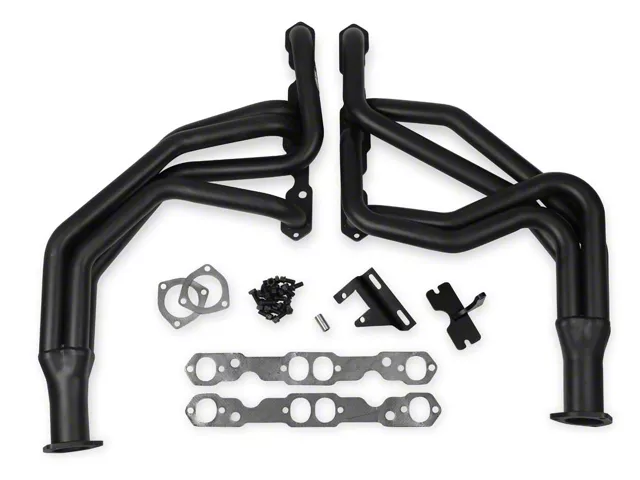 Hooker Competition headers offer the best value in the high performance header market. Designed for the value-conscious buyer who is running either a "stock" or "mildly-modified" engine, Hooker Competition headers offer premium features at a very competitive price. Made of durable 16 gauge mild steel tubing, the Hooker Competition header design utilizes a long transition collector to reduce back pressure and increase exhaust flow. A perfect sealing surface is assured with the 5/16" machined flanges, with welded O-ring seals. Experience has proven that this flange size is ideal to maintain header integrity and be pliable enough to seal each exhaust port. Tubing is mandrel-bent to maintain metal strength and provide consistent tube diameter at radii to maximize performance. Hooker Competi