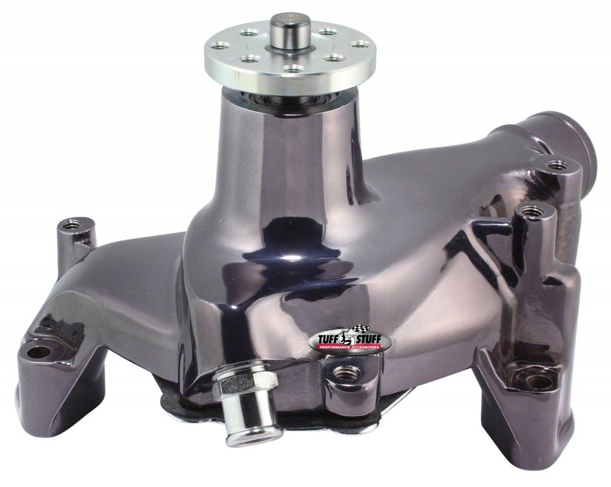 Tuff Stuff water pumps are hand made from premium quality new components - not remanufactured and are quality built in the USA. Precision-made ball/roller bearings and spin-balanced fan hub sustain higher RPMs. Our SuperCool option includes a custom water impeller that flows 30% more coolant to reduce water temperature by up to 20 degrees. Available in chrome plated, polished aluminum, powder coated or as cast finishes.
